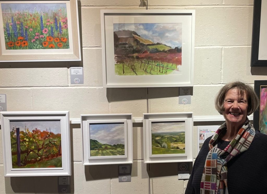 This week I’m exhibiting with Oxshott Art & Crafts Society at The Gallery, Denbies Wine Estate Dorking. I’ve included 4 pieces – Coffee on The Parade – View of Box Hill from Denbies Vineyard – Buttercup Meadow – The ruin at Painshill